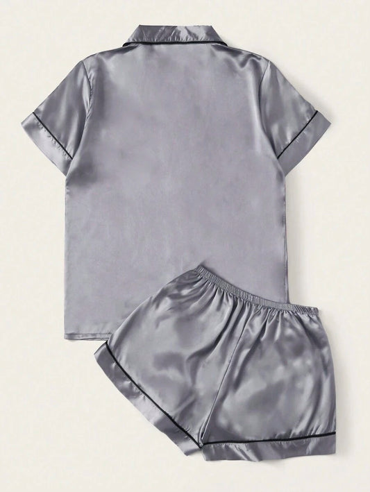Bella de Fashion Trends Women’s Contrast Pipping Satin Short PJ Set /Nightdress Silky/ Night Suit For Women’s ARJ-SHT-01-GRY