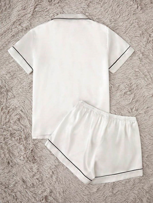 Bella de Fashion Treasures Women’s Contrast Pipping Satin Short PJ Set /Nightdress Silky/ Night Suit For Women’s ARJ-SHT-01-WHT