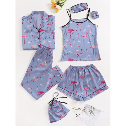 Eshaal Omani Deluxe Pajama Set for Women Silky Finish Night Dress For Women and Girls 7 Piece Night Wear Women's Pajama Sets