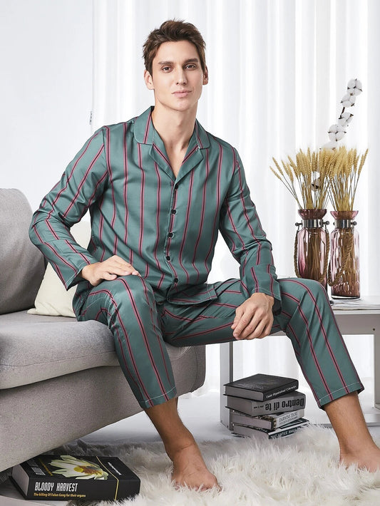Sebastian Men's Silky Satin Strip pajama set pjs, satin, full sleeve