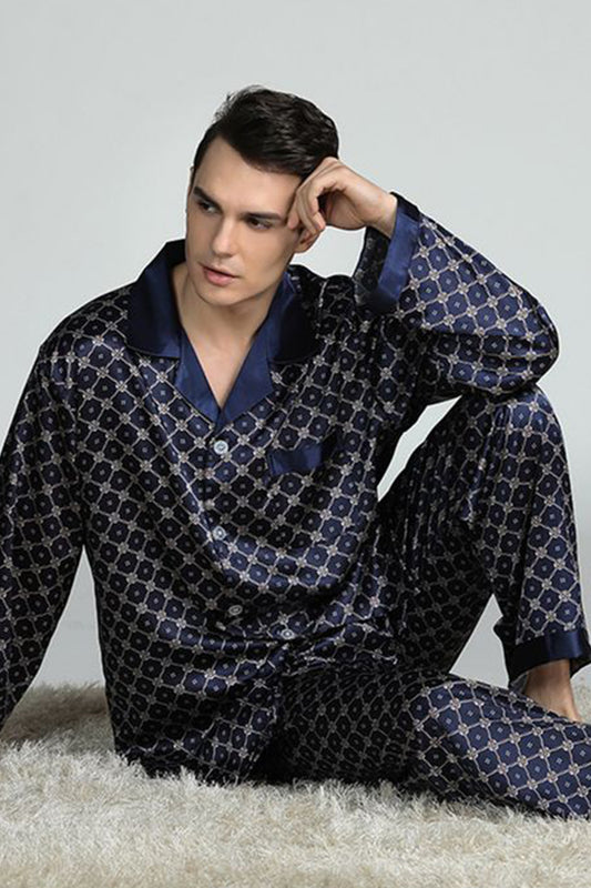 Sebastian Men's Silky Satin Box Print pajama set pjs, satin, full sleeve