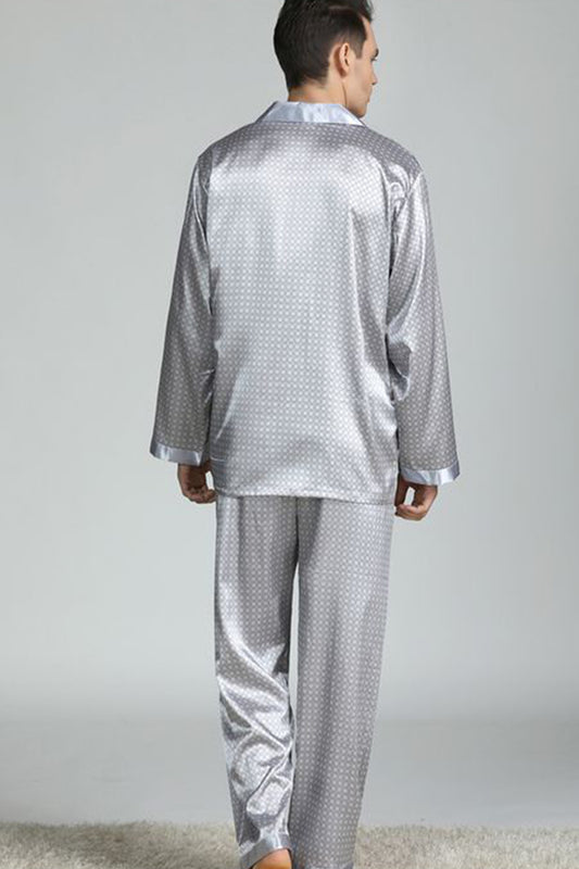 Sebastian Men's Silky Satin silver lapel collar button front satin pj set