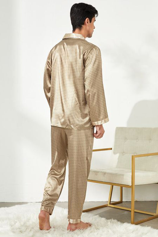 Sebastian Men's Silky Satin Golden Box Print pajama set pjs, satin, full sleeve