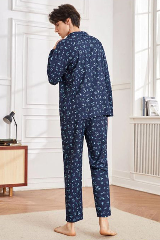 Sebastian Men's Silky Satin Navy Floral Print pajama set pjs, satin, full sleeve Front Pocket