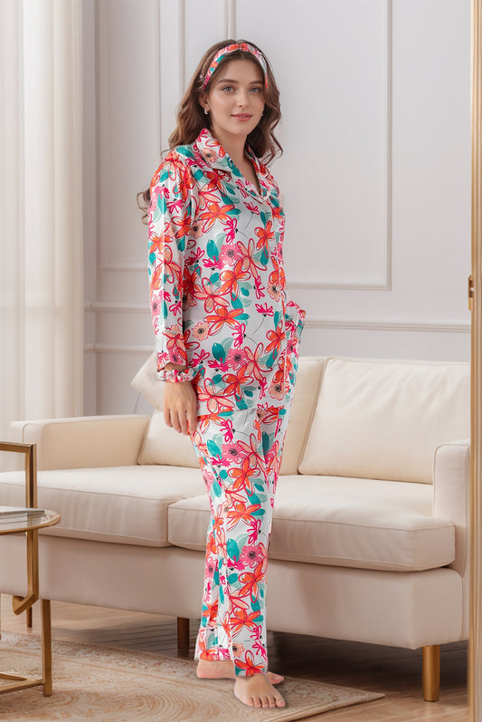She's inn Elegant Slumber Pajamas Printed Comfortable & Luxurious Silky Satin Nightwear Pajama Set