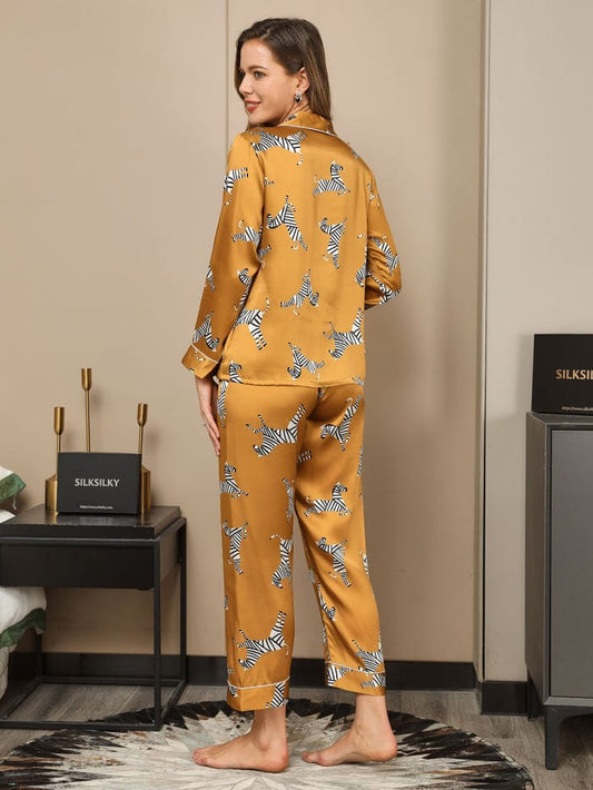 She's inn Silky Satin Golden Zebra Print Contract Pippin Satin PJ Set