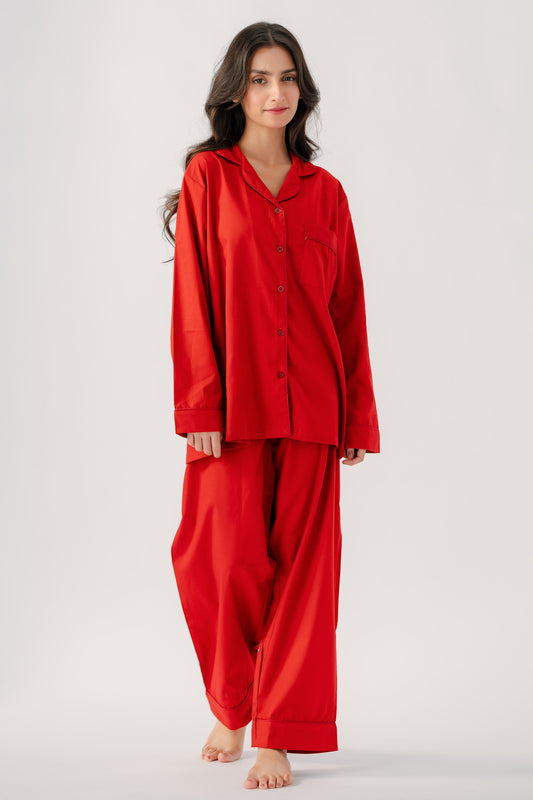 Marium Malik Red pajama set fabric made specially for dry season super soft wrinkle free.