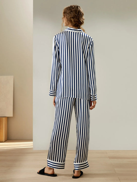 She's inn Navy Strip Women Nightwear Pajama Set Silky Satin Pajama set Night Drees For Girls