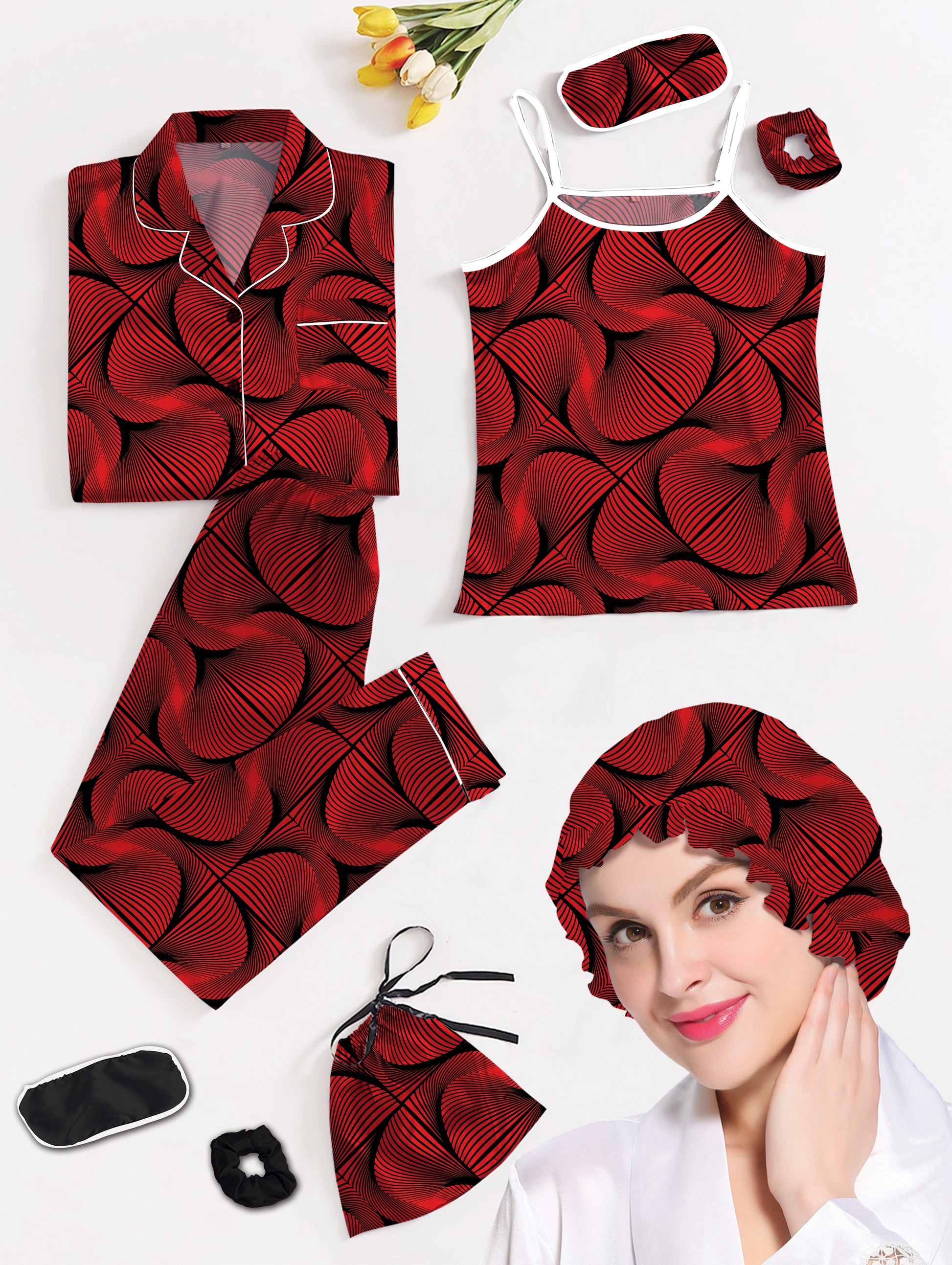 Eshaal Omani Blissful Nights – 7-Piece Silk Pajama Set Silky Finish Night Dress For Women and Girls 7 Piece Night Wear Women's Pajama Sets