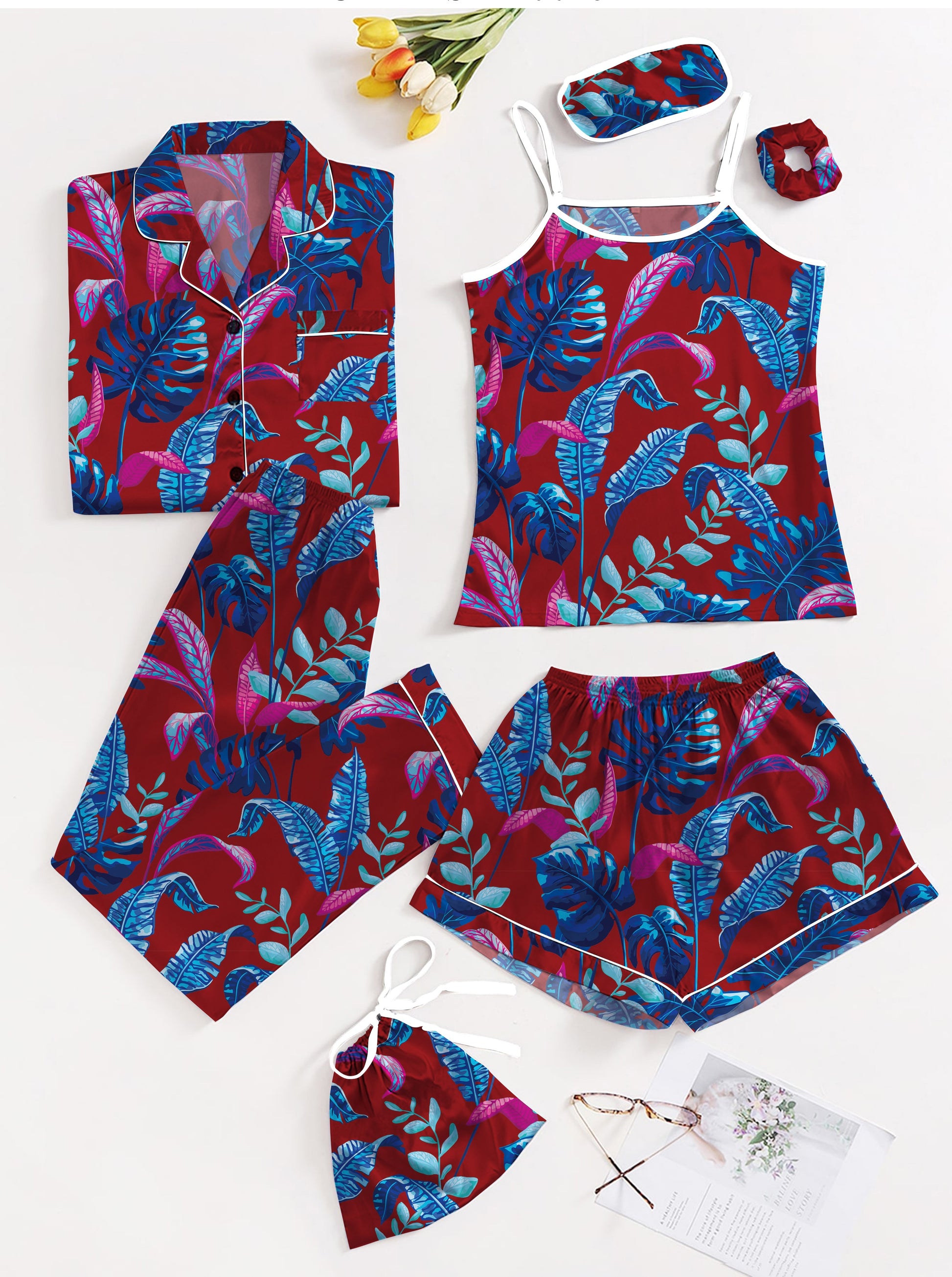 Eshaal Omani Luxe Essence – Silky Nightwear 7-Piece Collection Silky Finish Night Dress For Women and Girls 7 Piece Night Wear Women's Pajama Sets