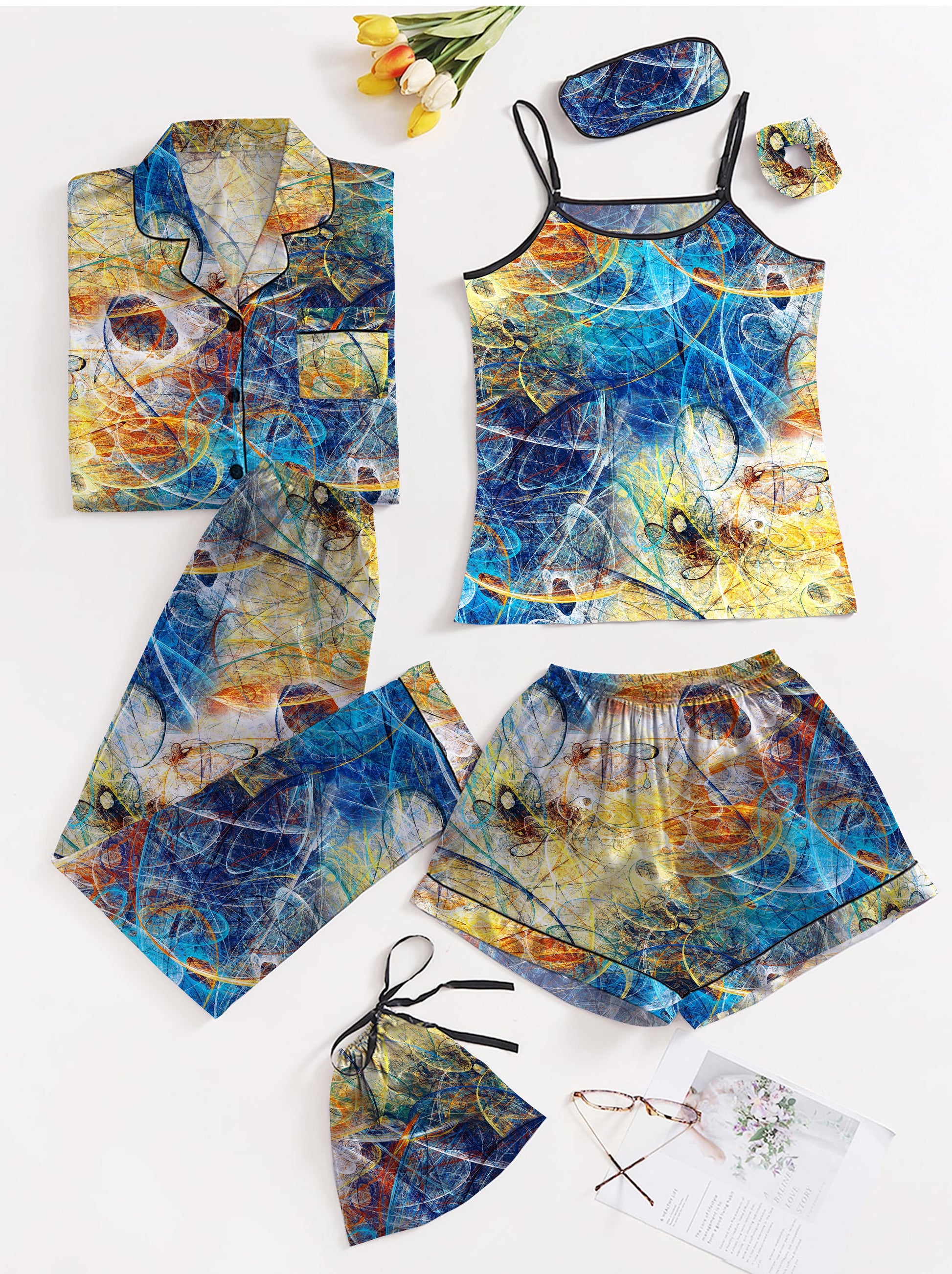 Eshaal Omani Silk Serenity – Deluxe 7-Piece Pajama Set Silky Finish Night Dress For Women and Girls 7 Piece Night Wear Women's Pajama Sets