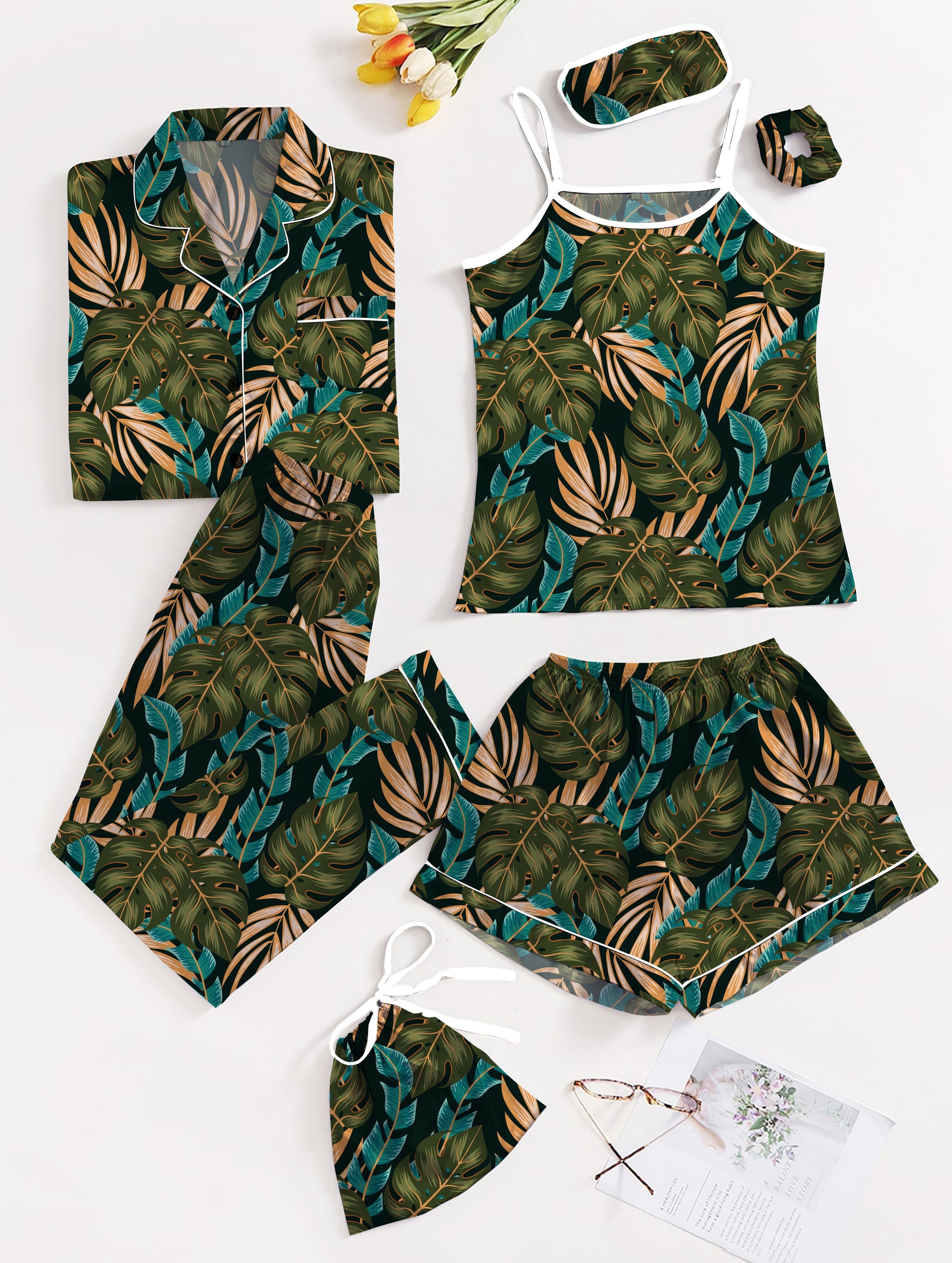Eshaal Omani Tranquil Dreams – Deluxe 7-Piece Silky Nightwear Silky Finish Night Dress For Women and Girls 7 Piece Night Wear Women's Pajama Sets