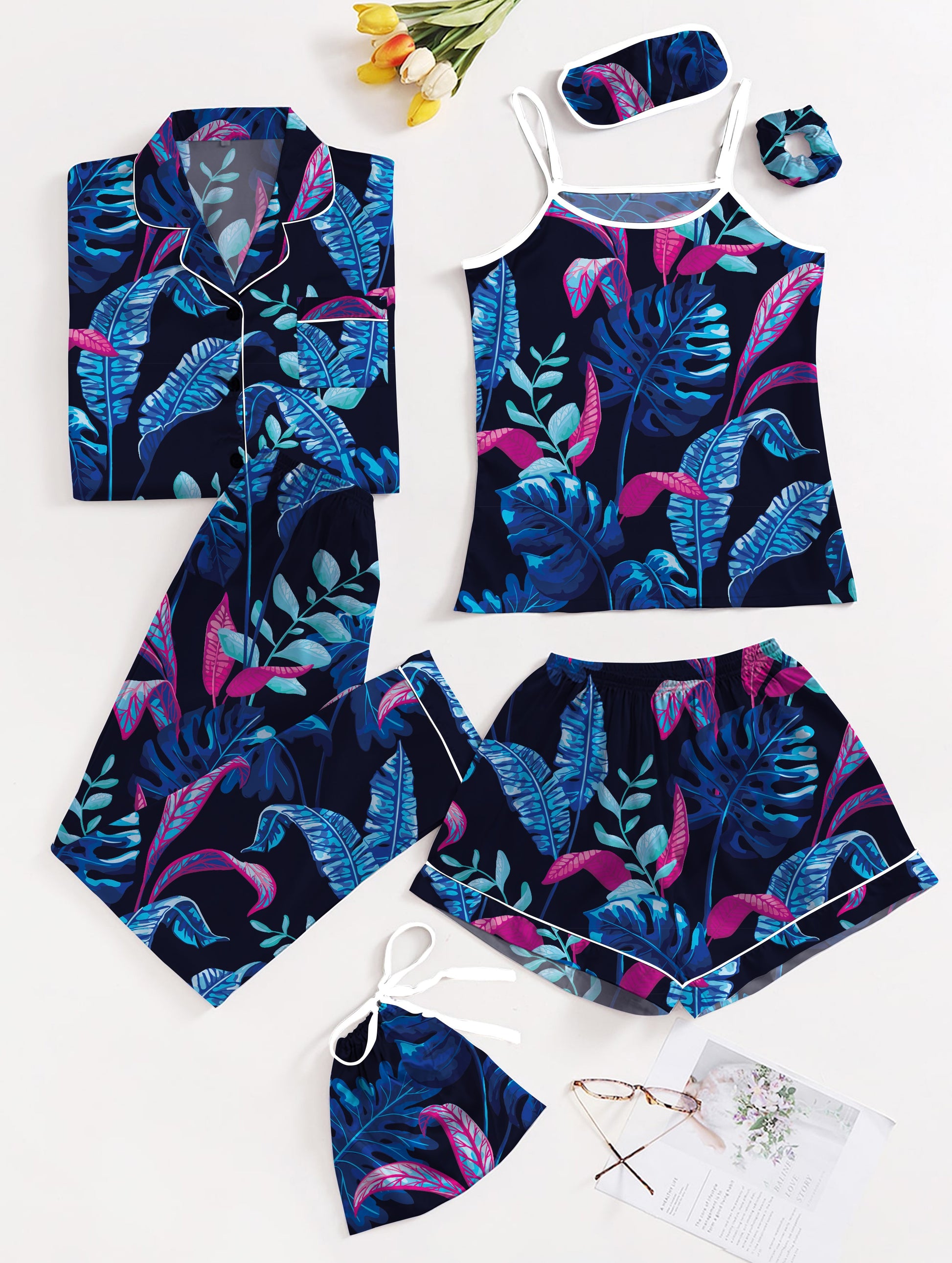 Eshaal Omani Velvet Bliss – Ultimate 7-Piece Silk Pajama Set Silky Finish Night Dress For Women and Girls 7 Piece Night Wear Women's Pajama Sets