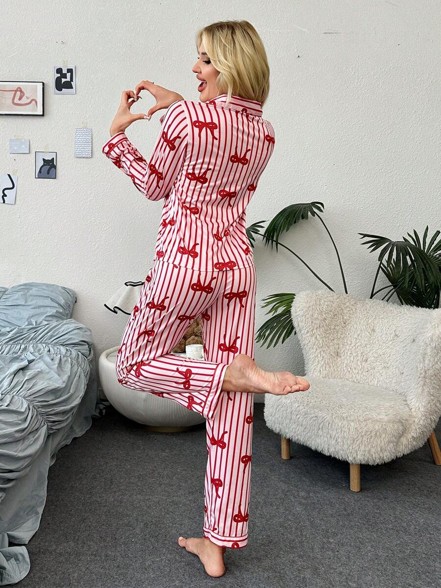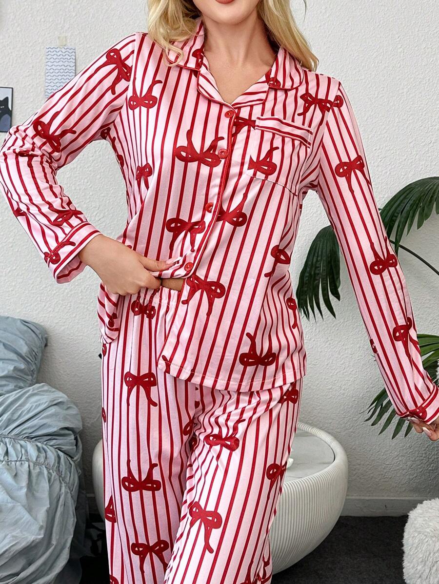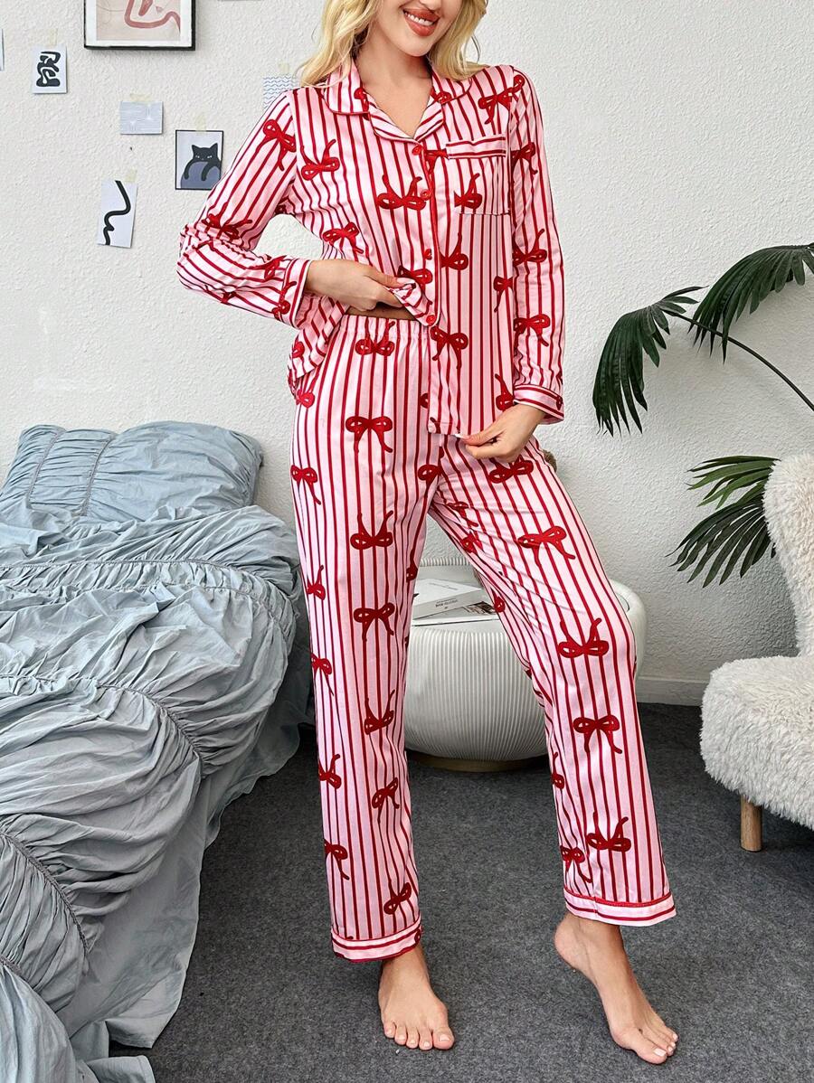 She's Inn Stylish stripe Print Women Nightwear Smoothy Silky Satin Pajama set Night Drees