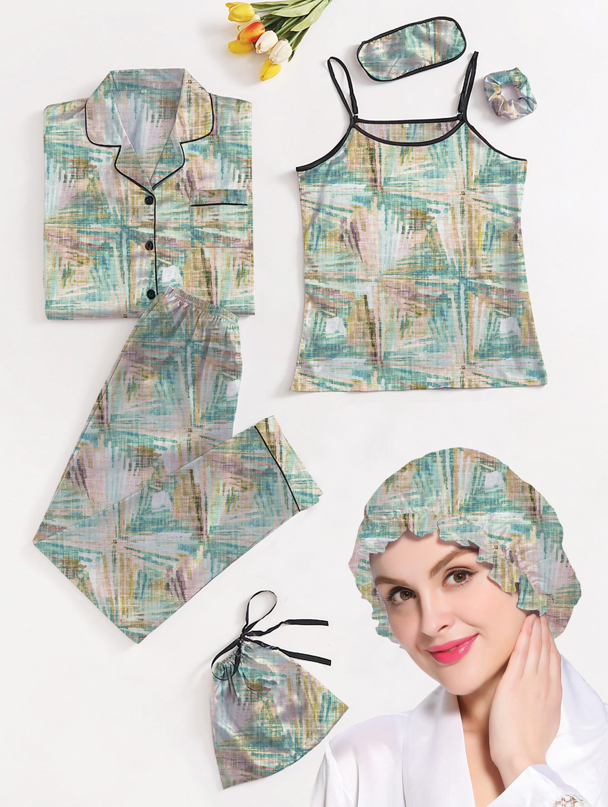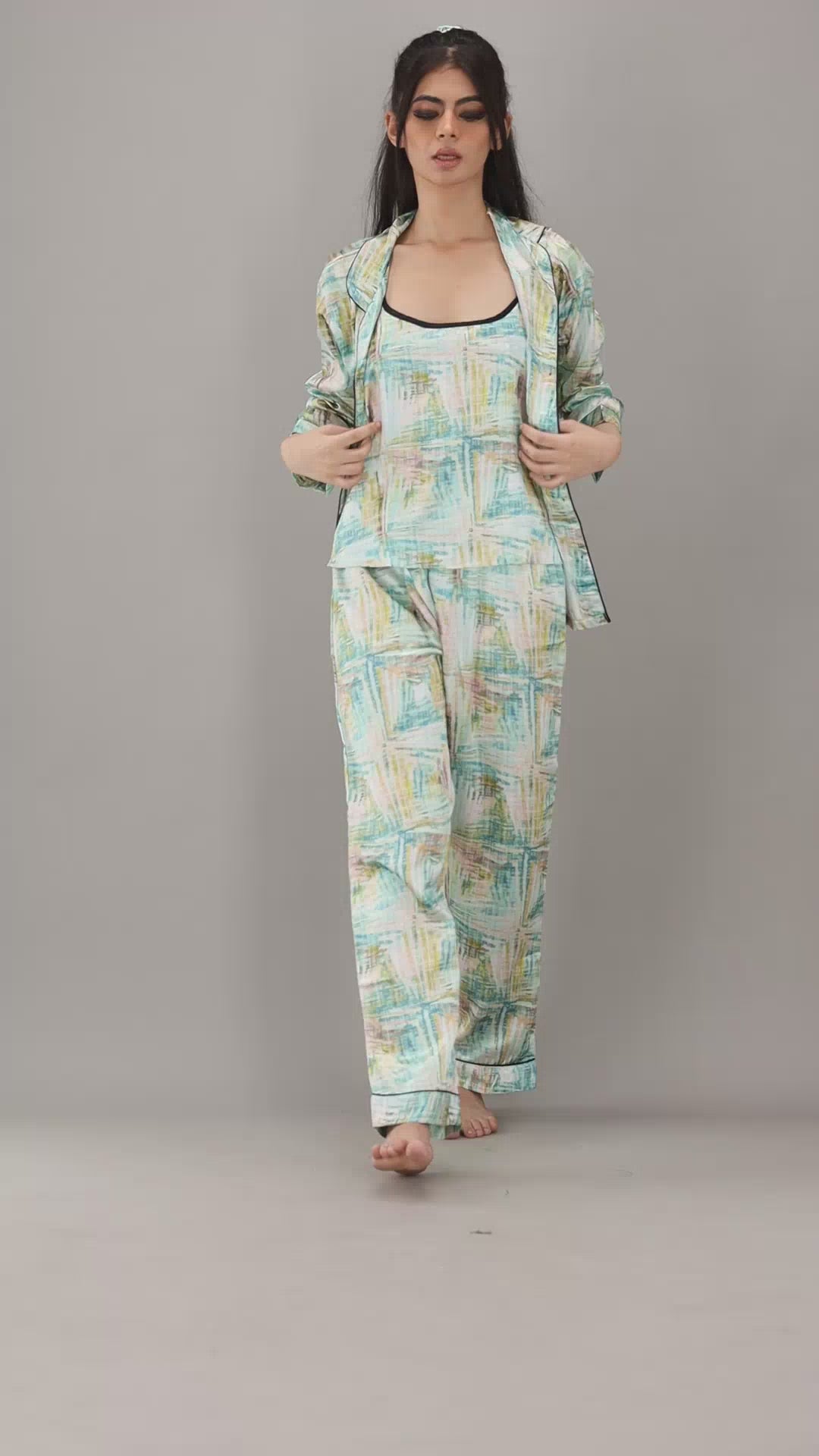 Complete Set: Includes a thoughtfully designed selection of nightwear pieces – tops, bottoms, and more – to provide a coordinated and stylish look.