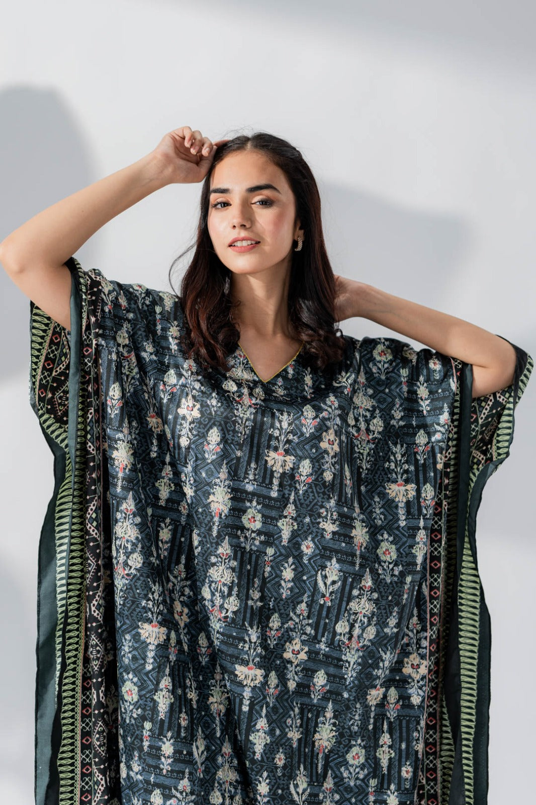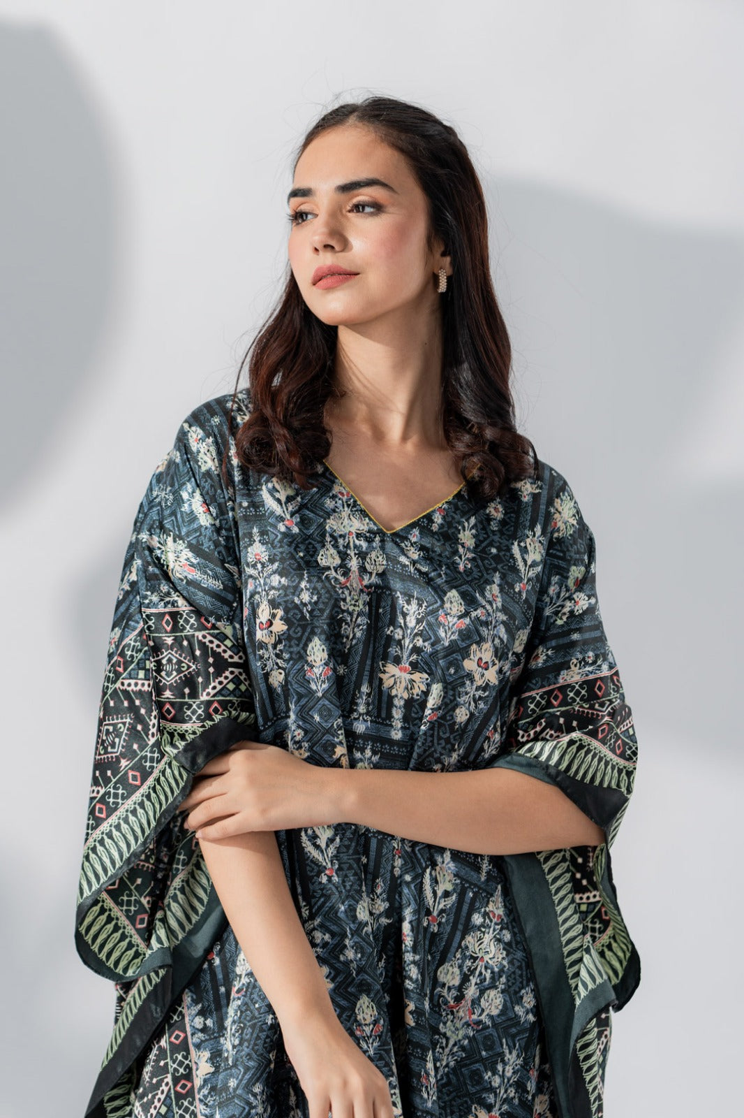 Studio By Arj women Black Flower print Silky Satin caftan lounge wear / nightwear