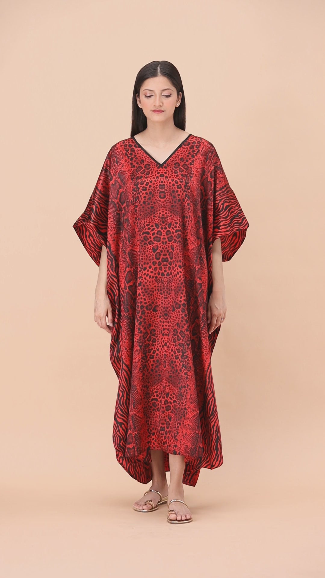 Studio By Arj women Burgandy Snack print Silky Satin caftan lounge wear / nightwear