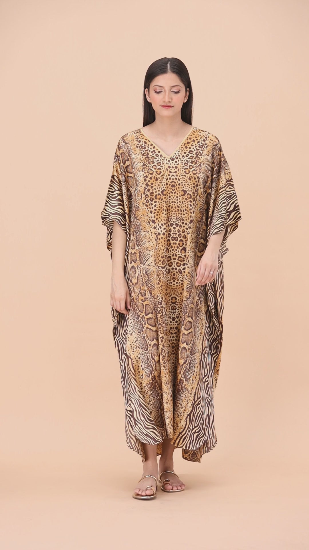 Studio By Arj Women Golden Snack print Silky Satin caftan lounge wear / nightwear
