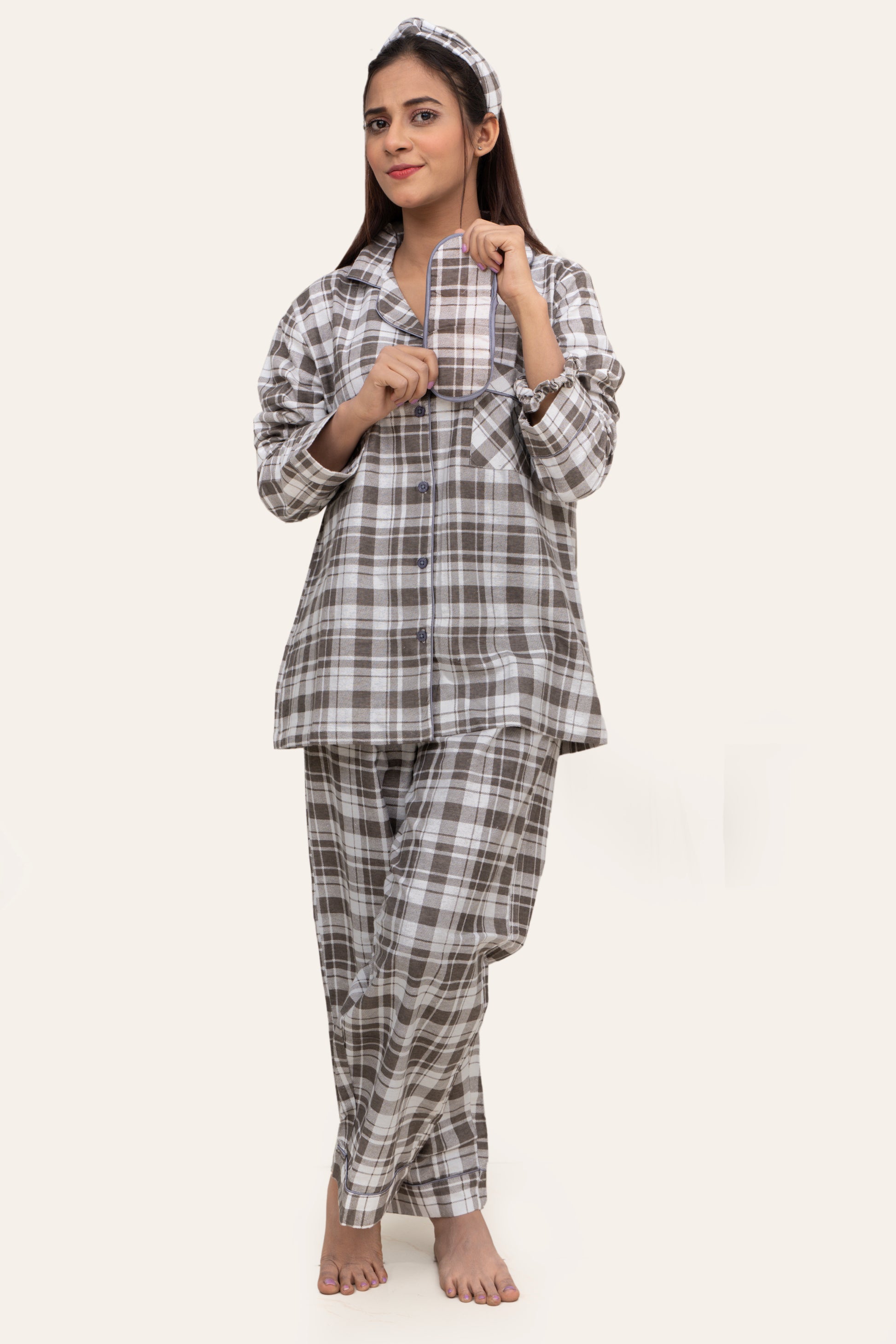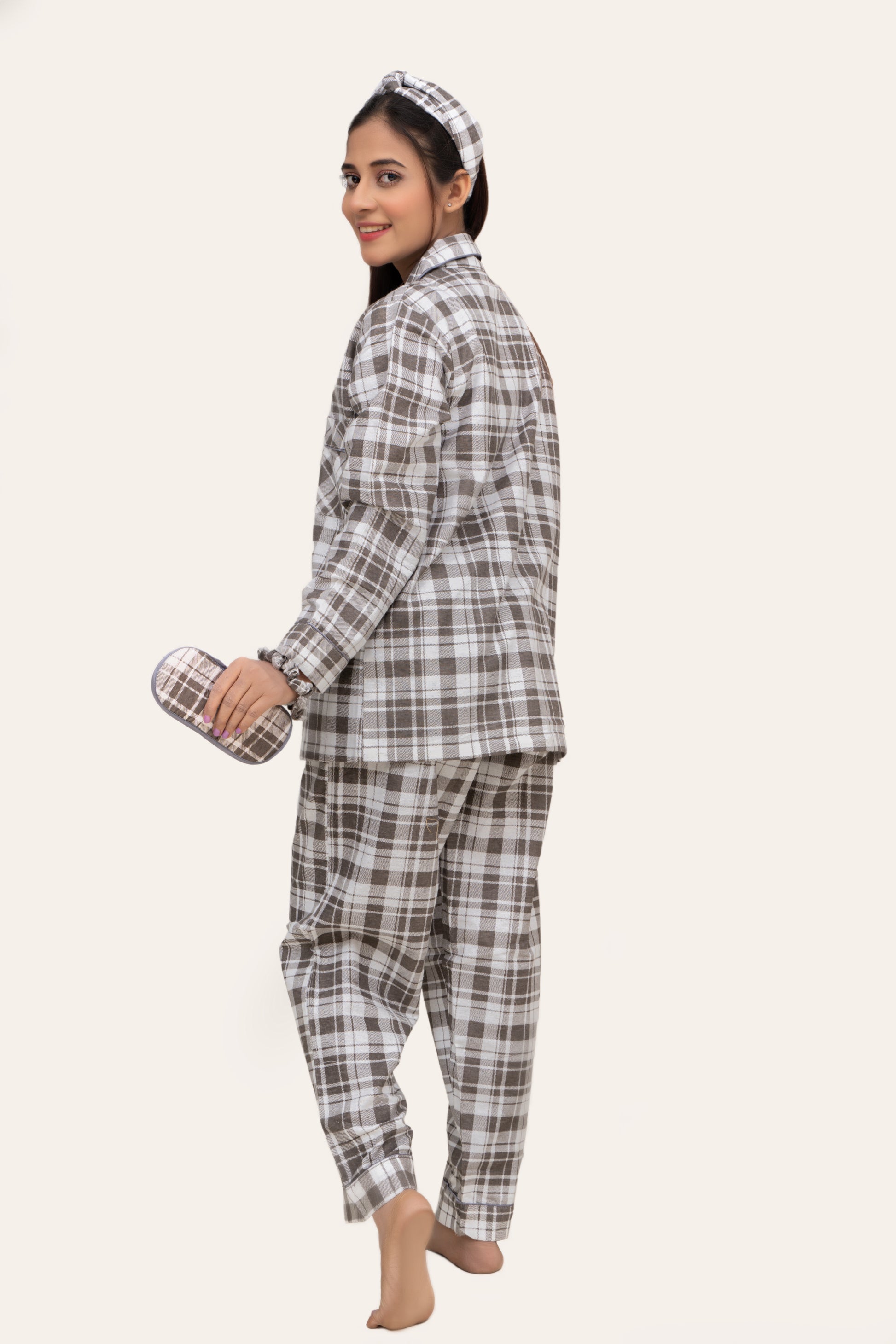 Wearing warm Women Light Weight 100% Cotton Both Side Brush Super Soft Flannel Pajama Set