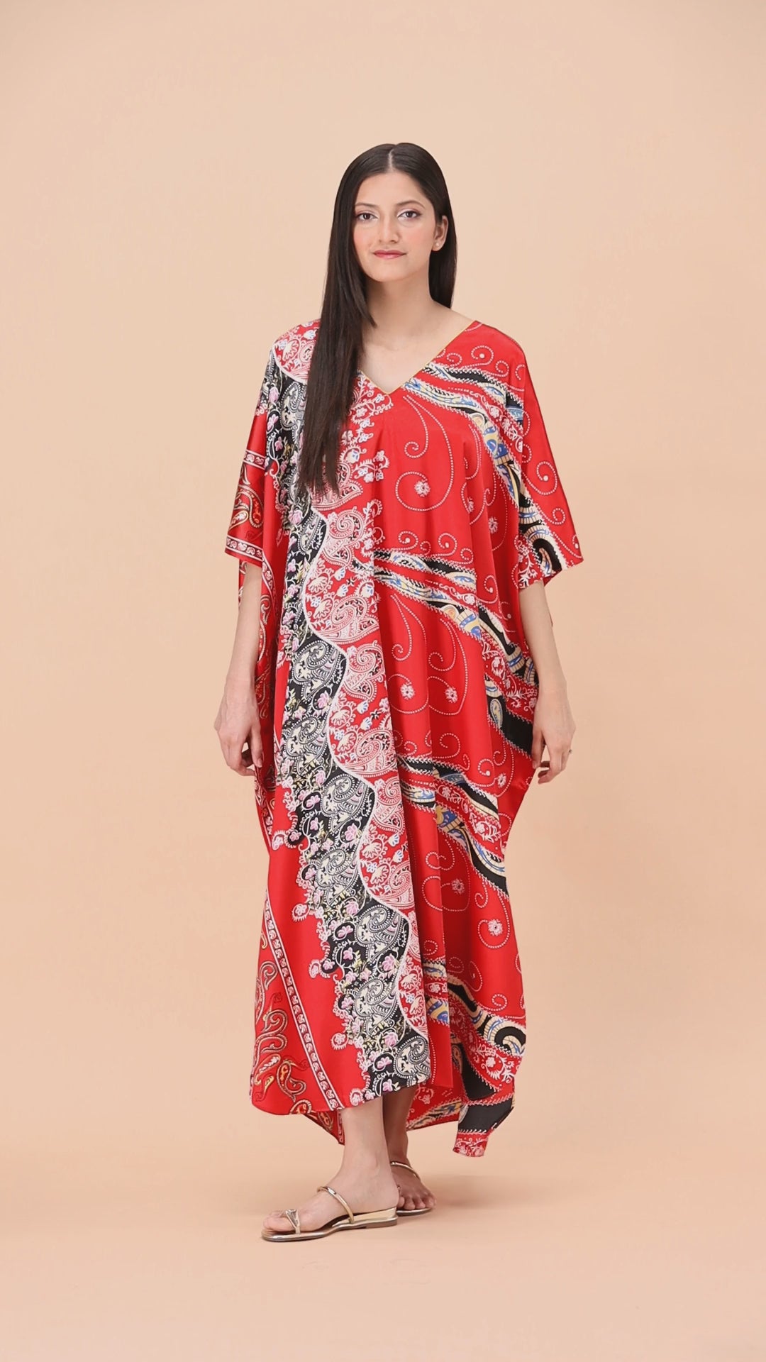 Studio By Arj Women Red Flower printed Silky Satin caftan lounge wear / nightwear