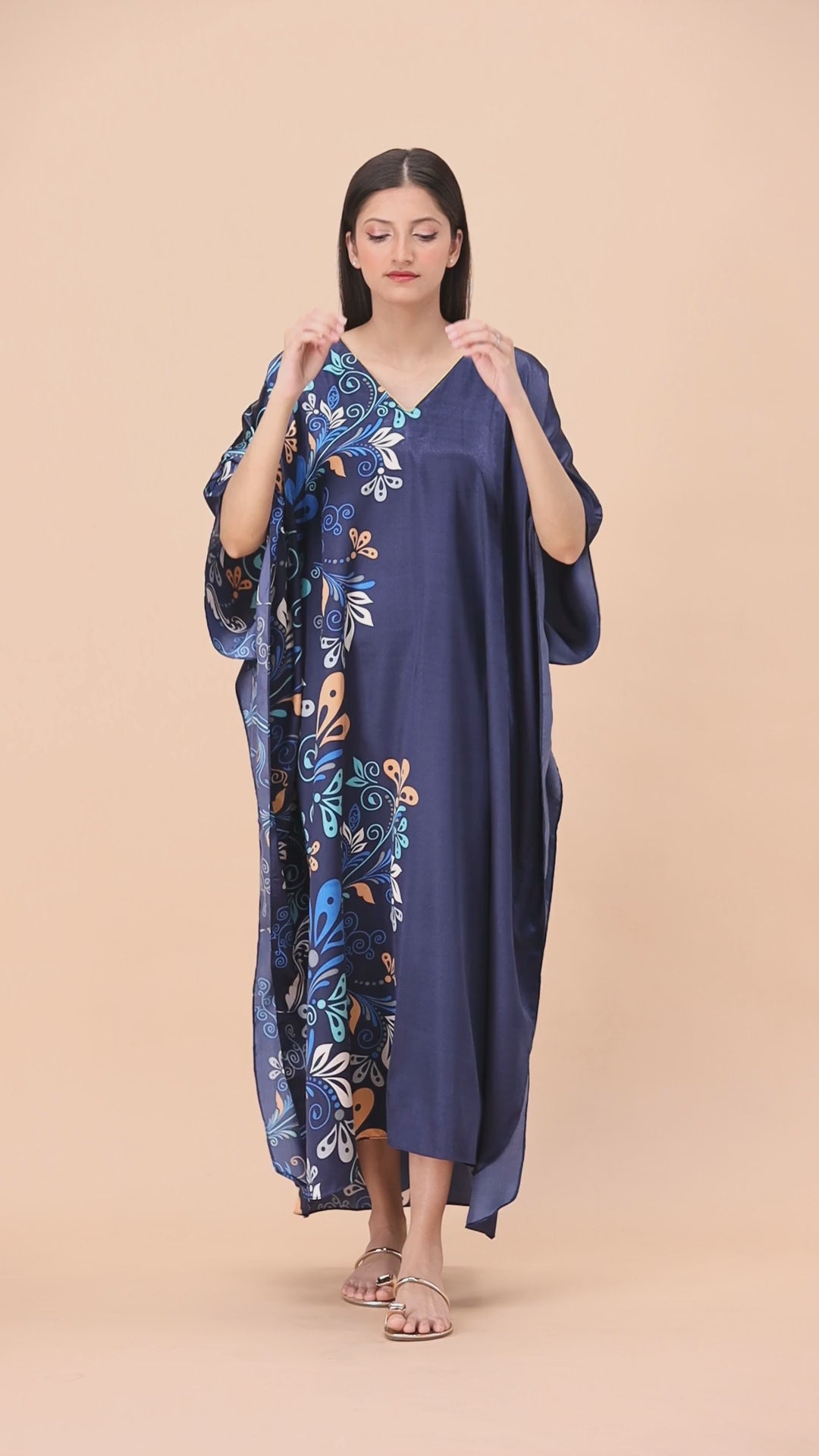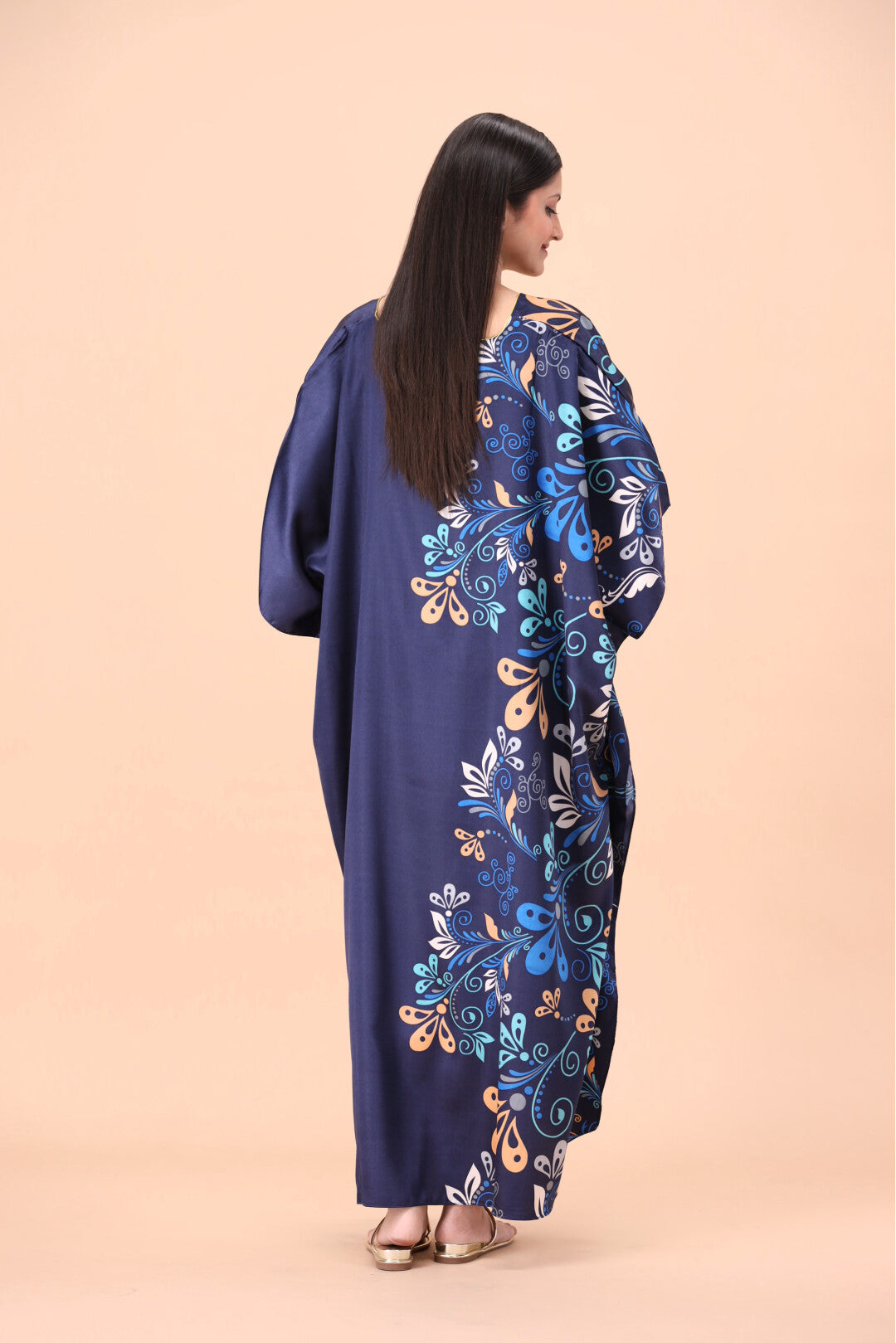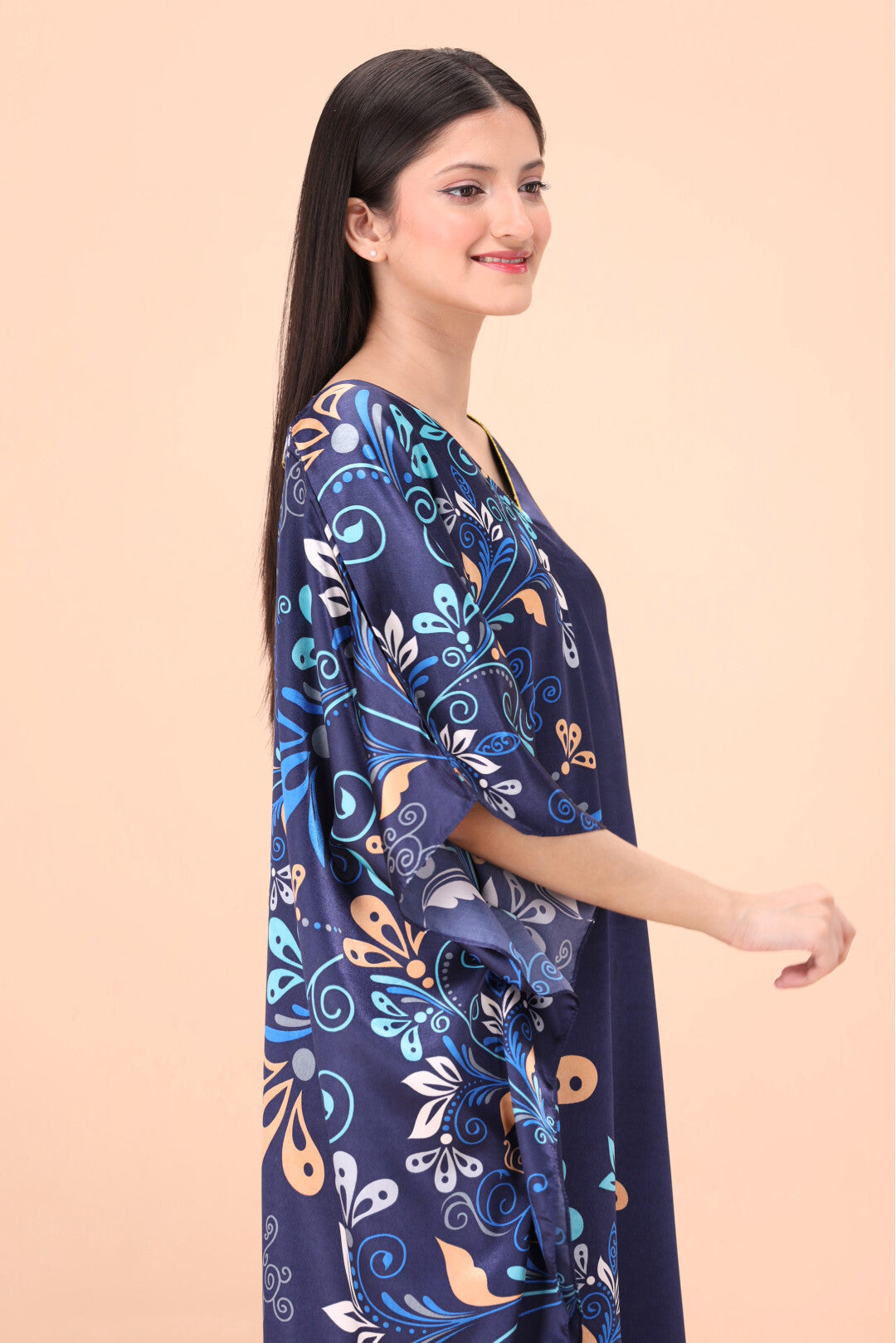 Studio By Arj women Blue printed Silky Satin caftan lounge wear / nightwear