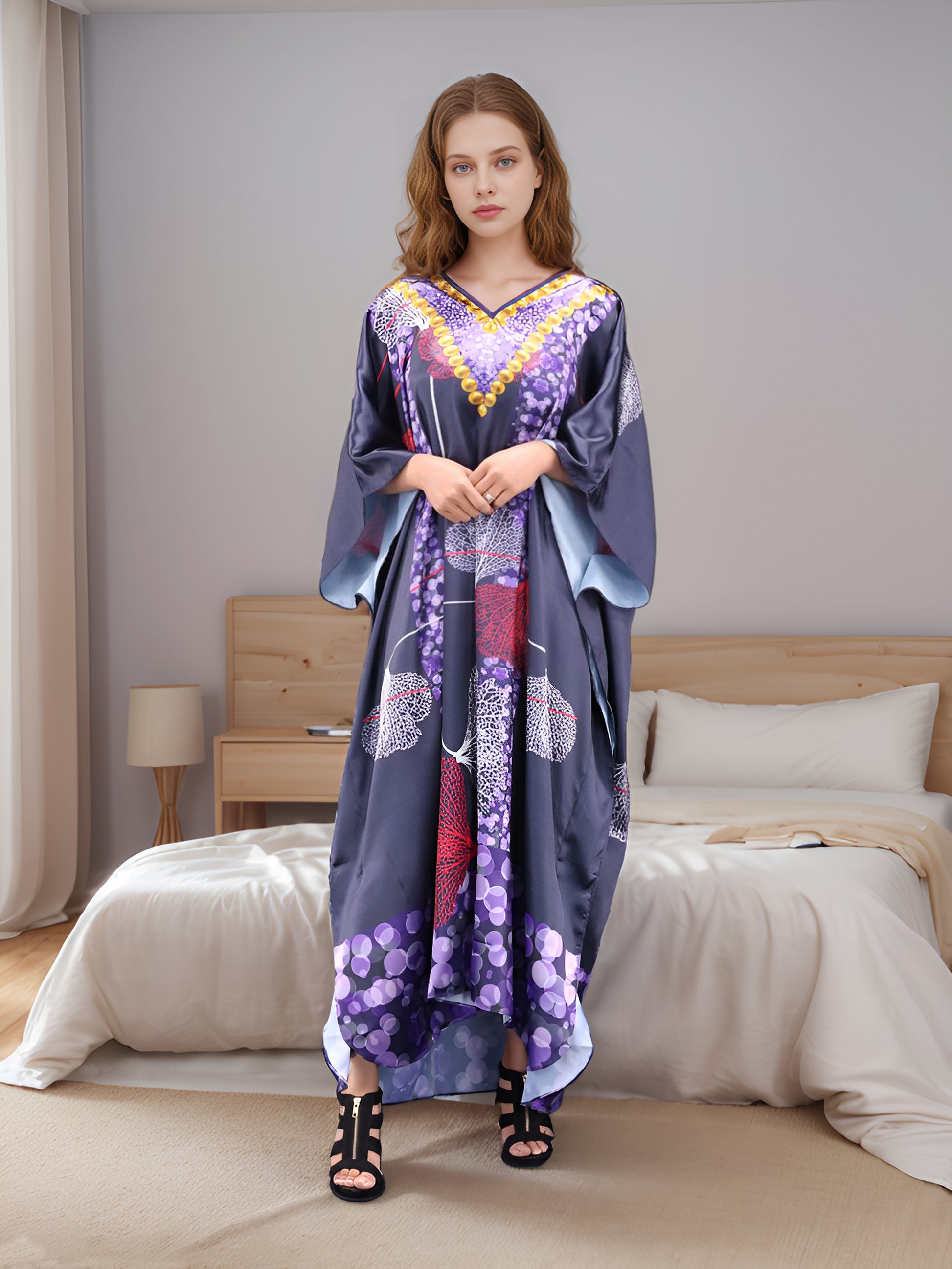 The Victorian Bliss Flowing Caftan combines timeless elegance with exceptional comfort. Designed with a loose, forgiving fit, this caftan drapes beautifully, offering maximum ease and relaxation. The flowing silhouette enhances your comfort while providing a graceful and sophisticated look.